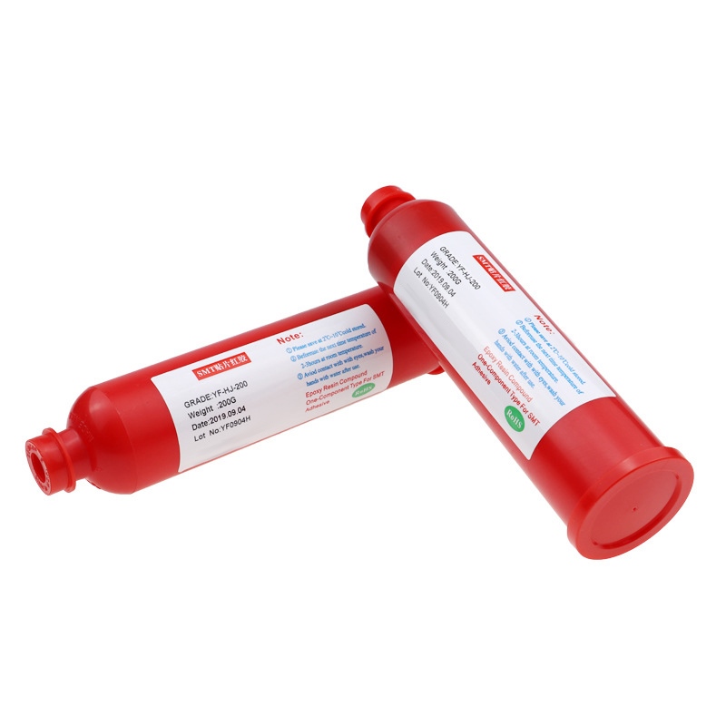 紅膠是一種SMT焊接所需的粘接劑,也屬於Smt生產材料,一般保存溫度為:2-10攝氏度之間,需要低溫保存,其固化溫度為:100攝氏度、120攝氏度、150攝氏度,受熱後固態化。